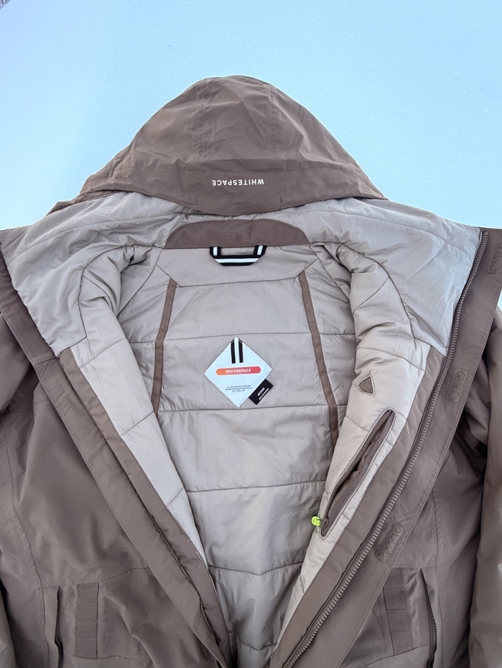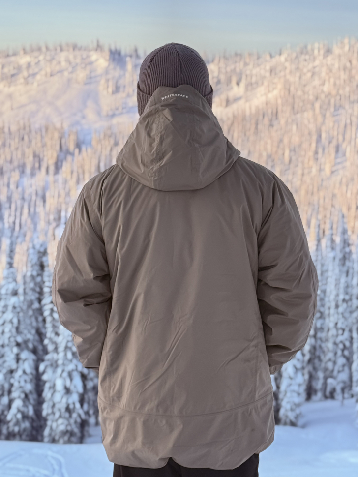 I had the pleasure of testing the Whitespace Performance Parka at Baldface Lodge. The conditions were crisp and clear with fresh powder. Little to no wind and temps in the 20’s. Having never worn this jacket before, my first concern was layering. Normally, I run a good moisture-wicking first-layer under a secondary layer (thin puffy or flannel), but the Performance Parka comes equipped with light insulation called PrimaLoft® Black Rise, so was that secondary layer necessary? I opted to skip the flannel and just wear my first layer under the parka which proved to be perfect!