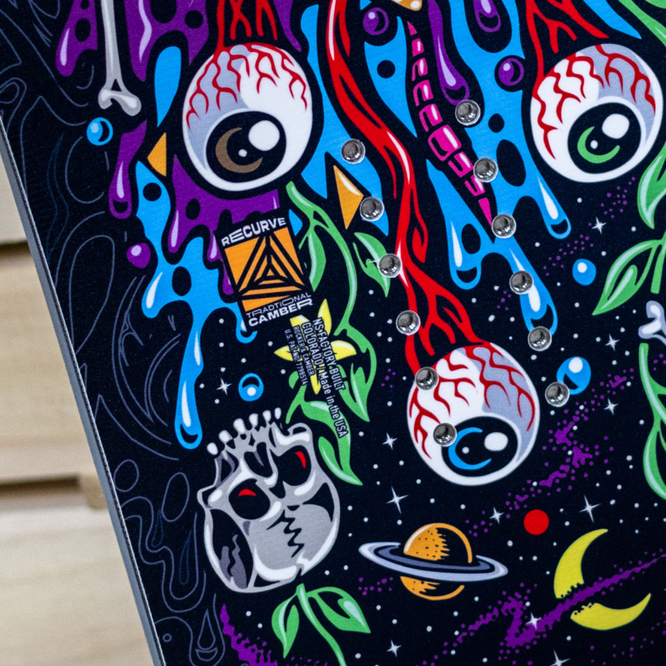 I tried to give it a skate influence but also just wanted that slime pattern to go through it all. I like when the design can flow through the board, so I added little elements into it to break up the flow and create some eye candy with the skull and the different elements stuck in the slime. I like to come up with things to pepper in there.
