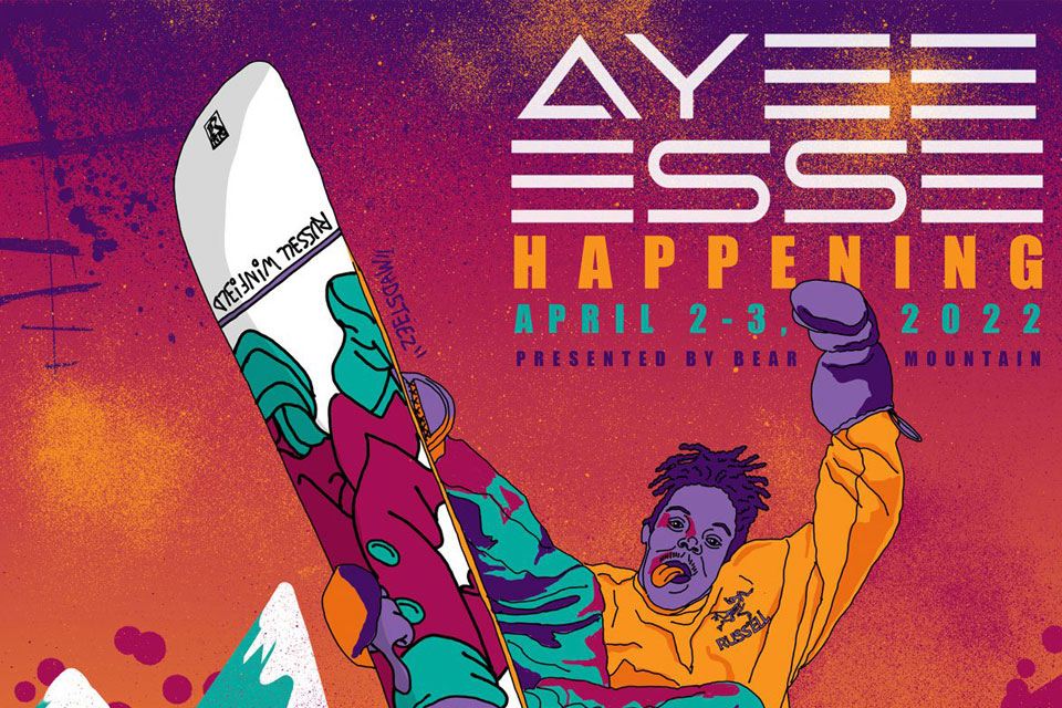 Brought to you by Russell Winfield, longtime professional snowboarder and living legend, the Ayee Esse Happening is at Bear Mountain on April 2-3, 2022, and features music, minipipe competition, and culture.
