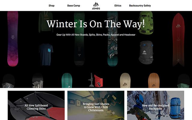 Jones Snowboards is thrilled to unveil a newly redesigned website at www.jonessnowboards.com featuring their award-winning 2016 product collection. Clean lines, a streamlined user interface, a new blog format and refined product info are highlights of the website. The new digital experience showcases the expanded Jones product line and Jones’ brand mojo better than ever before.