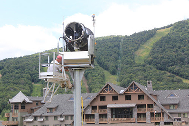 Stowe Mountain Resort’s state-of-the-art snowmaking operations have been supplemented by a three-year $9.8 million dollar snowmaking expansion. Totals for the 3-year project include; over 100,000 feet of new snowmaking pipe, almost 20 miles worth, 615 HKD SV10 tower guns, 150 Ratnik Baby X2 land frames, 20 SMI Super PoleCat snow towers and 8 HKD Turbo snow towers.