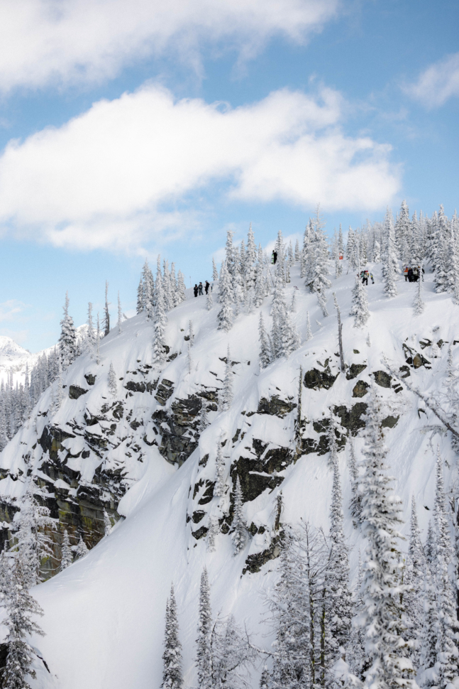 Trash Chutes, the venue, is a well-featured backcountry zone adjacent to Whitewater Mountain Resort. It’s a place littered with cliff bands, spiney features and pillows where local rippers cut their teeth in the freeride sphere. Now in year three, some riders have a sense of the zone, bringing a bit of experience to the drop in, where RND rookies like Audrey Doan and Maria Hidalgo went in blind.