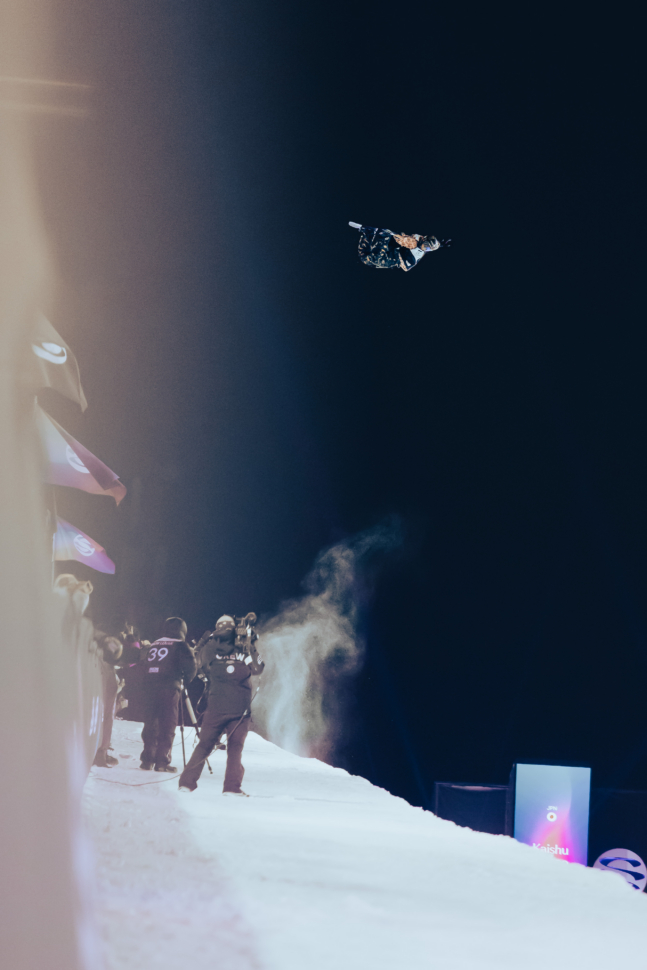 Another week, another Kaishu massive air. After his impressive air back at the Olympics in Beijing in 2022 that broke world records during the final, Kaishu has broken that record TWICE in the last few weeks at The Snow League, going over 25 feet out in Aspen and Laax. According to The Snow League, his latest backside air in the halfpipe with another massive method in Switzerland was a whopping 7.72m or 25’4″. Ally Watson caught up with him for a few quick questions while he was actually on the ground. Photos by Jake Kirby.