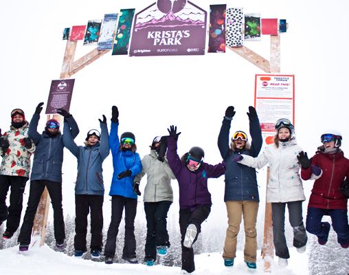 The grand opening of Brighton Resort’s girls only snowboard park was held this past Saturday under the snowy skies of Utah’s Big Cottonwood Canyon. The park has been named “Krista’s Park” in honor of the late Krista Moroge, who passed away in 2010 after a three-year fight with breast cancer. She worked for Burton Snowboards for almost a decade as the regional rep serving Utah, Idaho, Wyoming, and Montana, and was a staple of the Salt Lake City snowboard community.