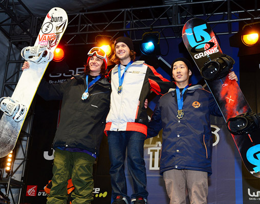 France’s home town boy Arthur Longo was holding onto the top spot with his first run until Vito’s final run which only scored Longo a mere .66 points ahead of the American. Longo’s run consisted of a huge cab cork 1080 indy on the first hit to a frontside 900 to a backside 720 tail to a backside double cork 1080 and finally a very clean alley-oop backside rodeo 540 nose on the last hit.