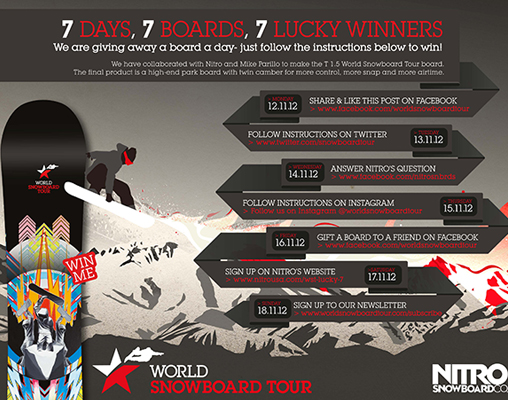 Give us all your attention for 7 days and you might just be lucky enough to score a limited edition Nitro World Snowboard Tour board. Find out how: