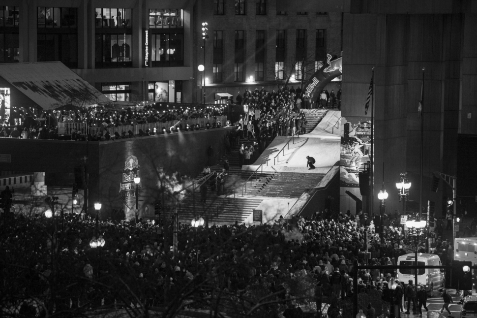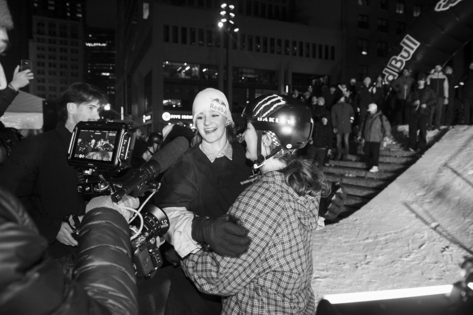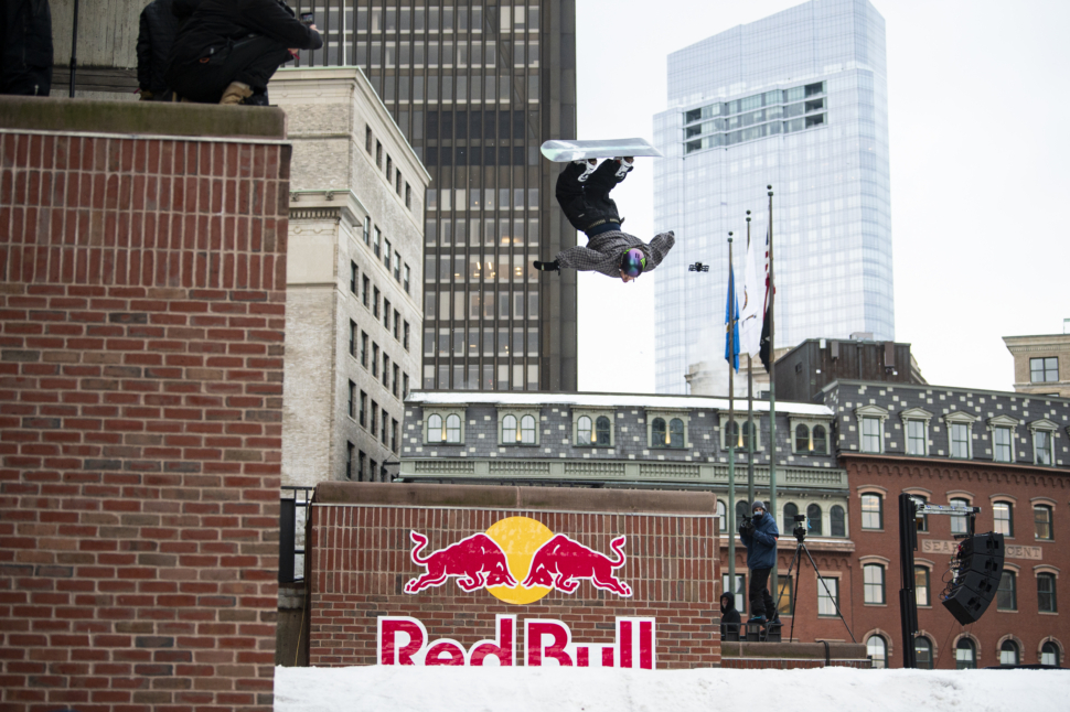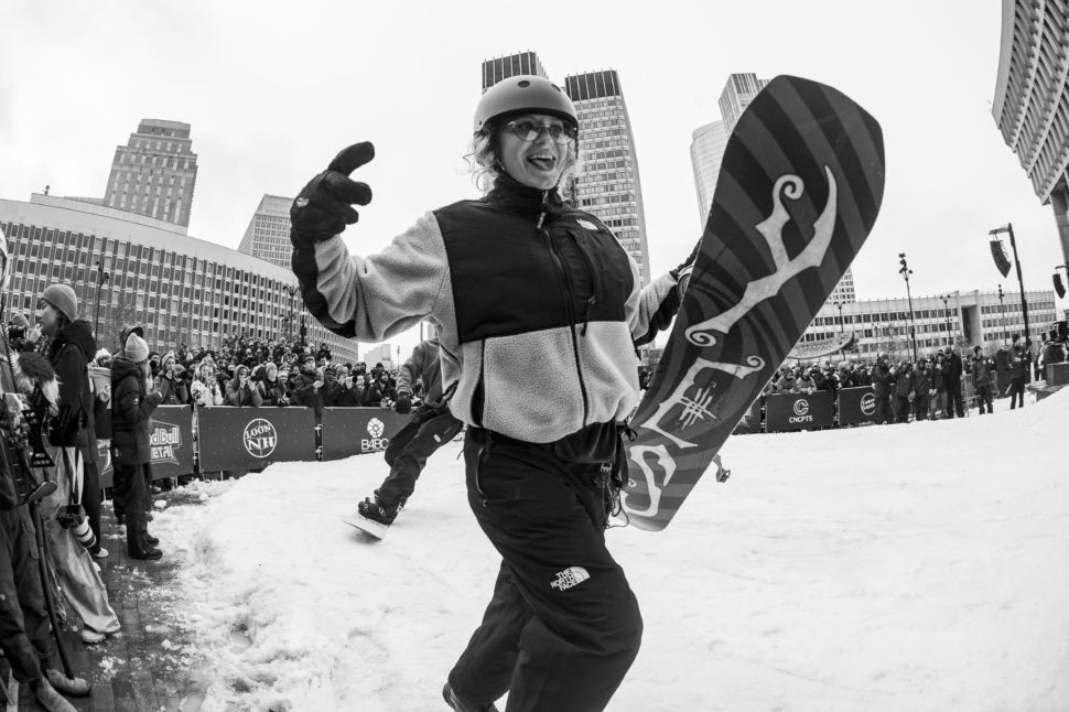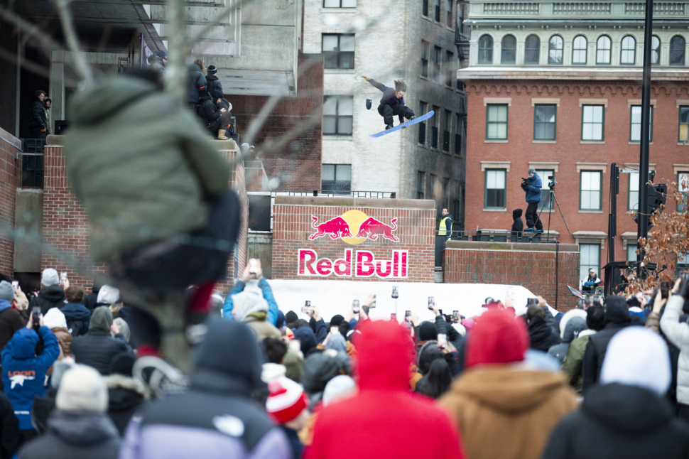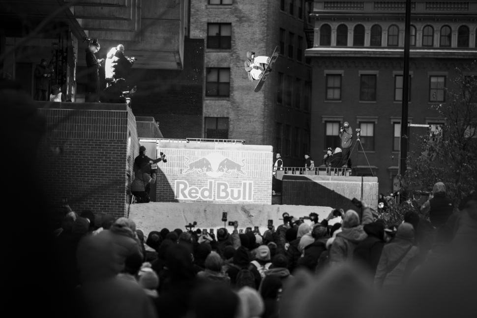 The biggest complaint from year one in Title Town was that people couldn’t see all the action, so Red Bull added big screens to the budget this year and livestreamed the whole event on some jumbotrons, which must have worked well because there hasn’t been an uprising on social like there was before. Way to listen to the people! I didn’t read the press release for the official number, but there were about 40 or so riders, all incredibly talented, who put on a show for a similar-sized crowd to the year before (20,000 people, according to last year’s press release). The sky was grey, but it didn’t get as cold as last year, so that was nice. I also didn’t sweat as much as I did last year running around looking for angles, which was very nice. And before you say, well maybe you didn’t try as hard, I would just say mind your own business and why are we talking about how much I sweat while shooting photos at a snowboard contest when I should probably be talking about the snowboard contest?