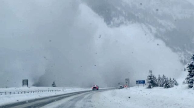 Jacob Easton was heading eastbound when he captured the avalanche roaring down the mountain.